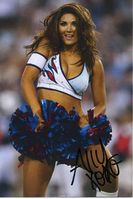 昨年ケリーコリンズQBの活躍で10連勝と勢いに乗ったタイ タンズ。その(多分)看板チアでしょう。よく画像が出ていますからね。お顔もものすごくキュート。ぜひハリウッドに!って言う感じでしょうか?アリーさんは写真の裏にもサインをしていただきました。ありがたいですね。