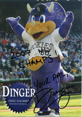 恐竜ですよね。綴りはDINGERって書くのですが、野球の俗語で「ホームラン」って言うらしいです。かっこいいね。電話番号書いてありますよ。是非。