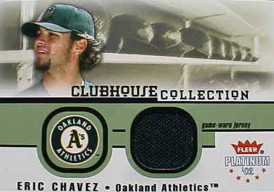 | アスレチックスのジャージーです。緑色。まぁ、帽子と同じ色だと思ってください。選手は昨年日米野球でも来日したチャベス選手です。ジャージーの周りを少し丸くきってみました。球団のマークのところにバットが付いているのもあるそうな。 |