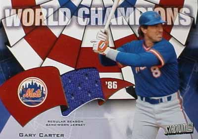 | 昔のメッツのメッシュジャージー。(ややこしい・・・)選手は引退したゲーリー・カーター。ブルーがまぶしいでしょ。1986年に世界一になったときに着ていたジャージー(だとは書いてない)。 |