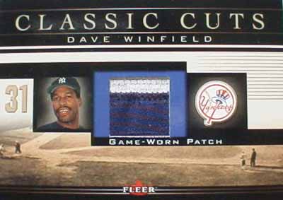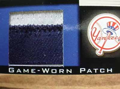 | これがジャージー部分をアップにしたもの。ね。ゲーム・ウォン・パッチって書いてあるでしょ?これはジャージーじゃなくて、ヤンキースのジャージーの胸についている「NEW YORK」の文字のところ。それを「PATCH(パッチ)」というのです。お値段は破格値です。ちなみに25枚限定だそうです。個人的には自分の棺桶と一緒に埋めてほしいカードです(笑)。 |