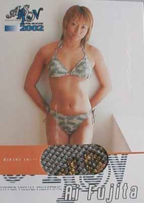 最後を飾りますは、ビキニカードです。でもアイドルでも、レースクイーンでもない。彼女は、女子プロレスラー藤田愛選手なのです。でもほれ、ビキニだから、どこの部分かっていうことが重要なんです。でも、絶対わかんない。ま、それが想像を掻き立てるって言うか、なんていうかね。えへへ。(笑)