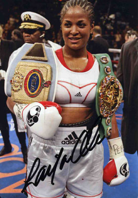 ご存知モハメド・アリさんの娘さんです。WIBAとWBCのチャンピオンベルトを持っているように、ものすごく強かったらしいですよ。24戦24勝21KOだそうです。無敗のまま結婚のため引退。すごすぎる。