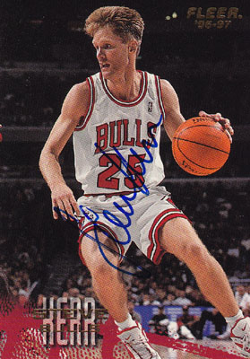 マイケルジョーダンが一度引退してその後復活して2度目の3ピートの時のブルズの選手。レバノン出身の何とドラフト50位!すごいね。かれは3ポイントシューターとして有名でした。ちょうどこのカードの96−97シーズンのgame6、優勝を決めたジョーダンからパスされた正面からの3ポイントがカーさんのハイライトでしょう。ぜひYOUTUBEでどうぞ。