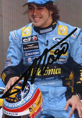 スペインのF1ドライバー。私のイメージはルノーですが現在はフェラーリかな?2005年06年は強かったですね。この人もなんと3歳からカートに乗っていたそうです。やはり何事も速い方がいいんですね。熱いうちに打つ方がいいんですかね?彼はトランプ,カードが好きだそうですよ。今年は見てみようかな?F1。