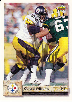 元ピッツバーグスティーラーズのディフェンスタックル。NTと書いてあるのはノーズタックルの意味で、普通4人がディフェンスライン組むのですが、3人とか5人のように奇数だと中心にいる人がノーズ(鼻)になるんだそうで、なるほどと思います。鉄のカーテン風です。