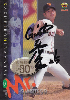 元讀賣ジャイアンツのサウスポー。先発ではなく中継ぎでよく投げていたと記憶しております。このカードが発売されていた頃よく投げていたと思います。ドラフトは8位。その時の1位は高橋由伸さん。引退してジャイアンツの打撃投手をしていたときにもらったと思います。今はJR西日本のコーチだそうです。
