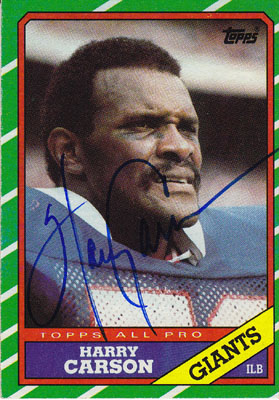 元ニューヨークジャイアンツのランバッカー。見るからに怖そうですね。ものの資料によると、スーパーボールで勝ったときにHCにゲータレードのバケツを頭から浴びせるのは、彼がやって流行らせたようです。氷の入ったでっかいオレンジのバケツをね、ジャバーって。