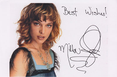 バイオハザードで有名なジョヴォヴィッチさん。大スターでありますのでサインは印刷ですが,印刷というよりオートペンかな?書きました感があります。必ず返信してくれるとても良い人です。日本愛好家ですし、トリビアの泉にも出演していました。2児の母親だそうです。かっこいい!母親ですね。