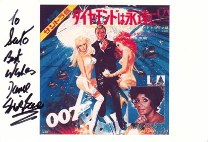 「007ダイヤモンドは永遠に」の主題歌を歌ってましたが、ゴールドフィンガーもムーンレイカーも歌ってました。すばらしい。彼女はボンドガールではないので右下の隅っこに写真で載ってます。赤い髪をしたボンドガールさんの手の位置がムフフですね。
