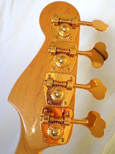 | こちらのハービー リッケンバッカーモデルのブリッジはかなりいい。ミュートもしっかり両端のねじを回すとミュートされてとてもいい。でもリアPUは使えないなぁ。高い88,000円の方ならいい音するのかな? ゴールドパーツがかなりいい。でもミツコシさんの話だと、ゴールドパーツは磨くと剥げてきちゃうから、ちょっと困ると。あまり触らないようにしないとね。 |