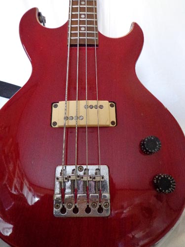 | PUをアップ。ちょっとさびているけど、1980年くらいだからね。もう40年前だから。一つの弦に対して2つの磁石で音を拾ってますな。これはプレジョンベースと同じ。音はんー。です。 |
