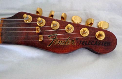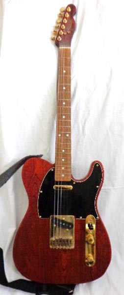 | たぶん珍しいと思う。材質はウォルナットだと思う。テレキャスターはあまり持ってないけど、このテレキャスターはテレキャスターの音がしない。かなり太くロック向き。ガンガンひずむ。シングルなのに。 |