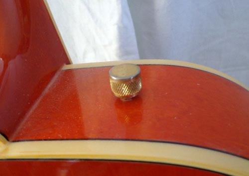ストラップピンも独特。これネジになっていてなんと1個2200円もする。さすがぁグレッチ。高級品だな。でもひく曲を選ぶよなぁ。それでスモークオンザウォーターは弾けないよなぁ。