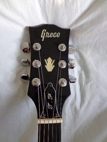 | 本家にも同じモデルがあって、レスポールプロフェッショナルと書いてあるそうですが。グレコは宝石のインレイですかね?ロッドカバーにはたぶんT,Fと書いてあります。ご購入した方のイニシャルでしようかね。グネコロゴなので70年代でしょうね。 |