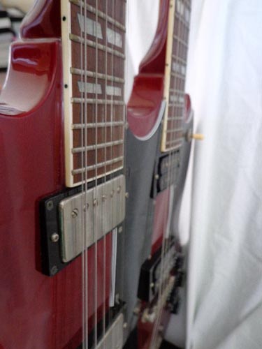 | ギターを弾く時にはこう見えます。なかなか壮観でしょ。これでステージ上動き回るんだからジミーペイジさんは偉いねぇ。 |
