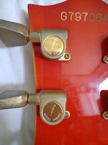 ペグもグレコ。全部グレコで作ってますって感じですね。この写真でもヘッドが5Pだということがわかりますね。