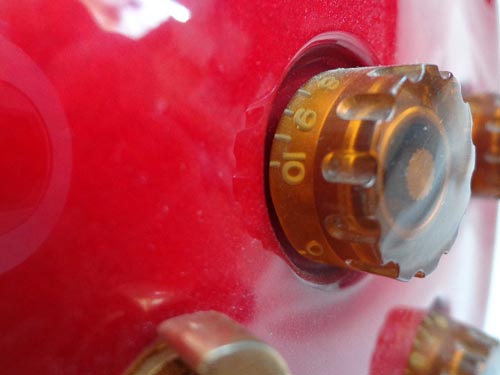 コントロール。レスポールと同じ2ボリューム2トーン。それはいいとして、2個のみにスイッチは?これが有名なデュアルサウンドスイッチ。BCリッチにもあったやつね。そんなに使わないよ。しかも電池切れたら使えないし。