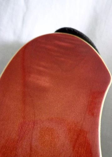 | まっすぐなネック。昔網走に黒いグレコのリッケンバッカーモデルがあって、おぉ!って思って手に取ったら弓矢か?と思うぐらいネックが反ってた。アーリッケンバッカーは反りやすいんだと思った。でもこれは大丈夫。フェルナンデスだから? |