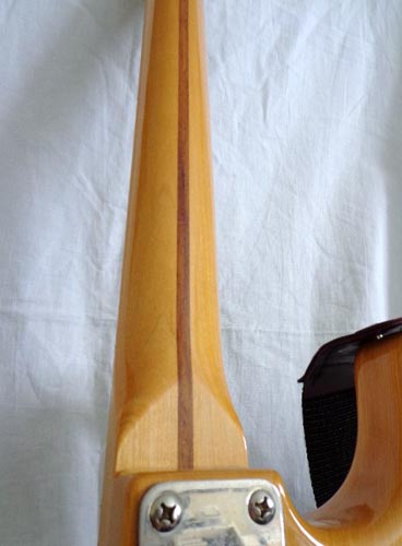 | スカンクラインが美しいネック。だからといってワンピースネックとは言い切れないけど、たぶんそうでしょう。カタログにはメイプルワンピースって書いてあります。 |