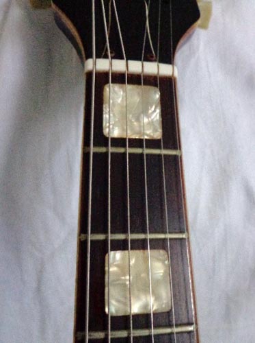 | でもね、ネックのポジションインレイなんて結構豪華。こんなところに金を使ったのか?って感じだけどね。 |