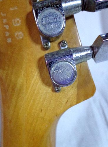 ね?かなり木目が違うでしょ。きっとSSシリーズのネックはみんな同じなのかもね。PUやブリッジやバイサウンドで差をつけていたと思われる。あまり大差ないかも。ペグが1個違うね。