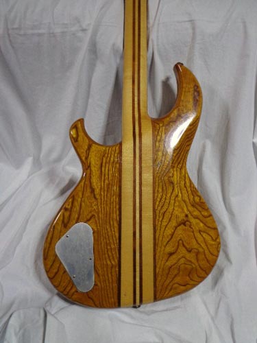 | とっても美しいバック。ボディはアッシュ。ネックはメイプルとウォルナットの5Pスルーネックだそうです。 |