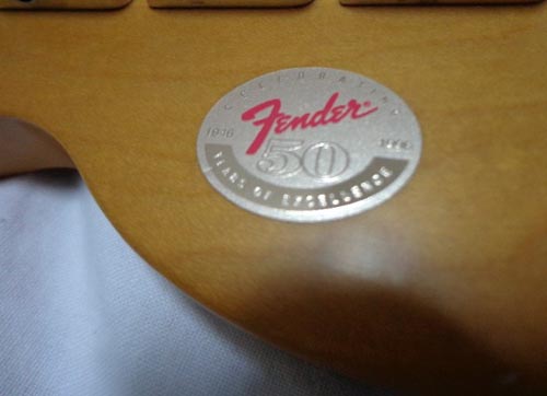 シールのアップ。光ってうまく取れなかった。50っていうのが見えるもんね。でもね、この50周年のギター、どれもすごいのではなく、やっぱりグレードがあったような。すべてゴールドなテレキャスターやネックプレートにゴージャスな彫刻とか。このギターは普通のクラスだと思う。ヤフオクでは6万から16万ぐらい。
