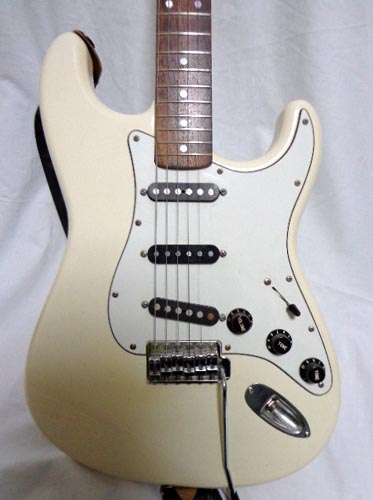 | このギターのいちばんの特徴はPU。フロントとリアにシェクター(中身は瀬尾モアダンカンだと書いてありましたが?)だと思います。ちょうどこのころリッチーさんがつけていたような。 |