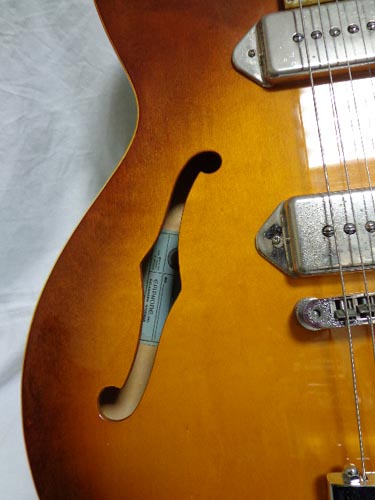 | この画像ではブルーラベルには見えないけど。フラッシュたいたからね。エピフォン カジノって書いてあって、カラマズー ミシガン と書いてありますね。そしてメイドインジャパン。 |