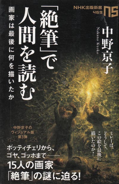 表紙の絵はミレー(落穂ひろいや晩鐘の)の鳥の巣かり、という作品です。絶筆てね、結果的に最後になりましたってことじゃないのかなぁ。この本の最後の作品はゴッホの「カラスの群れ飛ぶ麦畑」だけど、それはわかる気がする。やばい人だったからね。ほかの人は意識して絶筆になったのかなぁ?