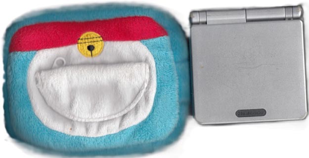 隣に映っているゲームボーイアドバンスSPのケースとして使っています。ぴちぴちなんだけど、いいケースがなくて。ゲームボーイアドバンスSPも傷だらけですが動きますし、充電もできます。ただもう画面がね、小さくて文字は読めない。でもたまにテトリスとかドラクエ3とかやっています。ゲームボーイアドバンスSPはたぶん2000円くらいでGEOで買った。お正月セールで。在庫セールみたいな感じだった。大町ゲオ店だったような。もう10年以上前。