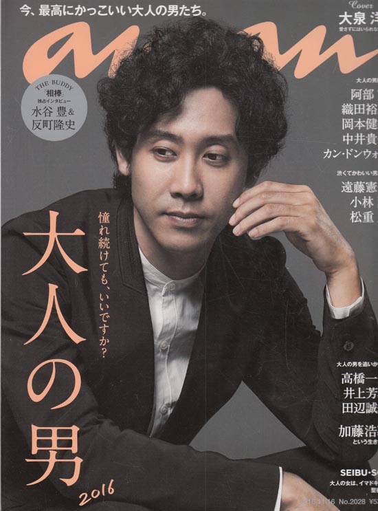 憧れ続けても、いいですか?大人の男2016ということで10年前ですが洋さんが表紙のアンアン。ヤフオクで買いました。別にあこがれてはいないですけど。でも俳優とどうでしょうと2つを使い分けているのはすごいと思います。本州では決してバラエティー番組のレギュラーはもたないですもんね。俳優はすごいと思いますが、三谷さんの映画やドラマに出るととてもいいですね。良さが出てます。さすがです洋さん。