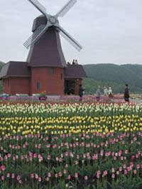 | 一面にひろがるチューリップの花畑。ほんのり甘い香りがただよっています。 |