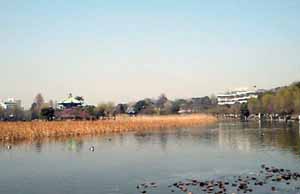 上野公園の忍ばずの池。ここは、サギやカモの良い遊び場になっていました。