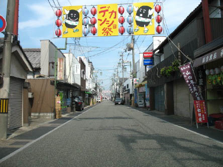 デカンショ祭(8月15,16日)の飾付けが終わった商店街