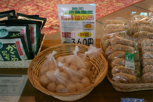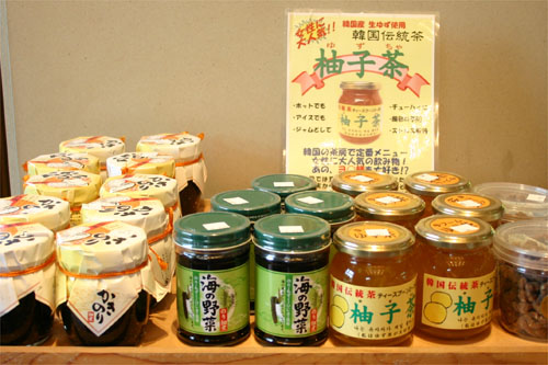 レストラン入口そばに、ちゃちゃワールドの木の人形