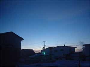 午前6時20分、東の空。今朝も快晴の北見です。