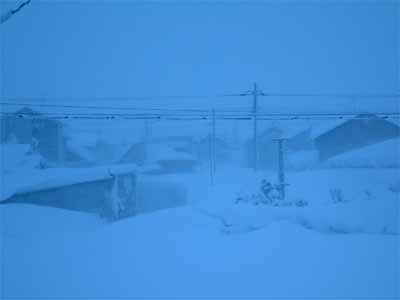 東側の様子。まだ雪が降り続いています。
