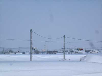 住宅地の道路はまだ、この時間でも除雪されてません。(無加川町)