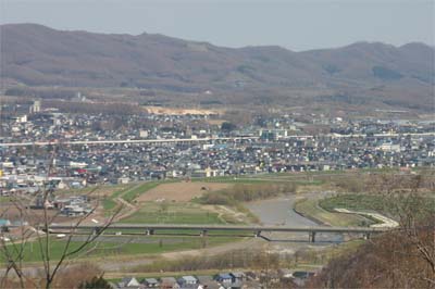 北東側の眺め。手前は常呂川にかかる若松大橋。