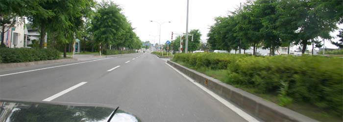 夕陽ヶ丘通り、道立病院そばの交差点。ここを右折するとイトーヨーカ堂方向。
