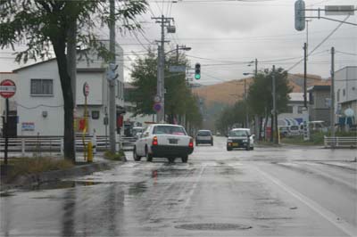 前方は、南大通りとの交差点。右折すると銀河線の高架、常盤通りの方向。