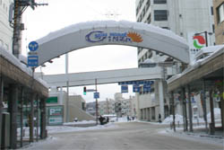 銀座通り、国道39号交差点。左折すると北見駅方向。