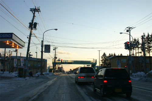 柏陽高校前の歩道橋。写真奥が北見駅方向。