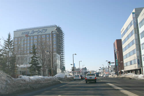 大通り西3丁目。姿を現した工事中のビジネスホテル。