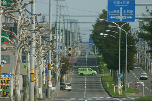 午前8時50分、緑園通りを山下通り方向(中村産婦人科病院前あたり)