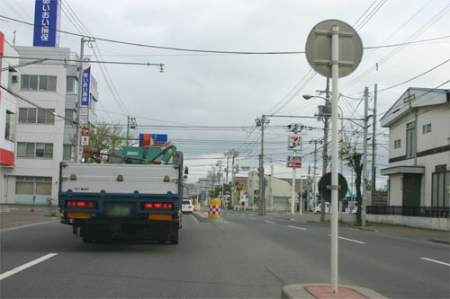午前7時40分、とん田通り、北見中央病院前