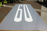 | こちらは実物大の道路表示。タテ5メートル、横幅1メートル20センチ。 |