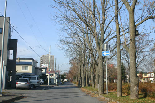 その堤防の向こうに見えるのは、西5号線の南大通り交差点。さらに奥は、国道39号交差点